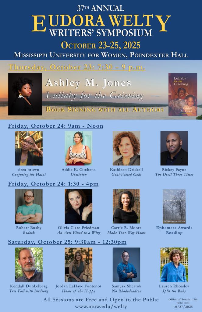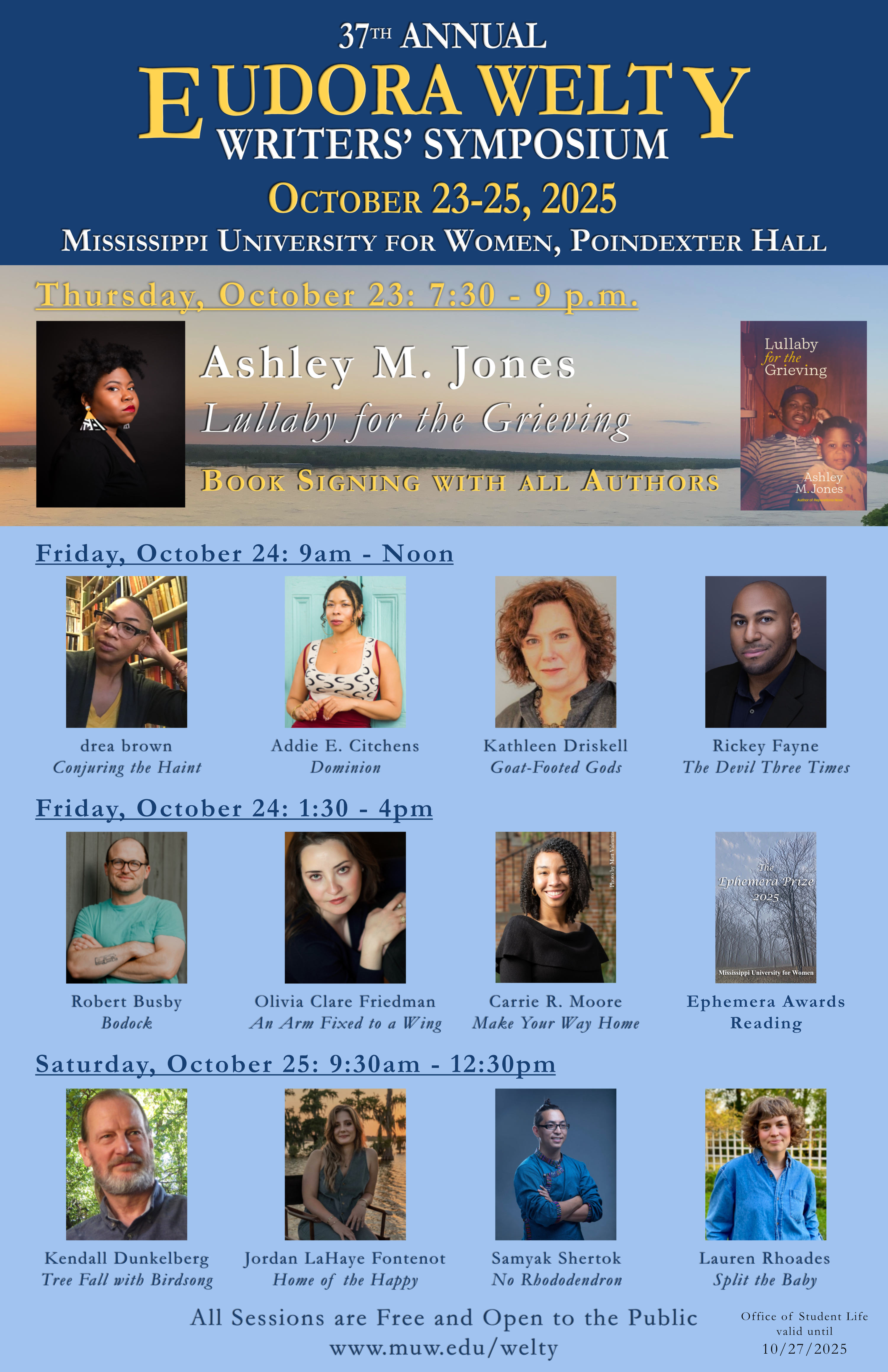 Other poets include Kathleen Driskell, Olivia Clare Friedman, myself, and Samyak Shertok. We will also hear from drea brown, our Welty Prize scholar whose book Conjuring the Haint explores the importance of haunting in the poetics of Black women.